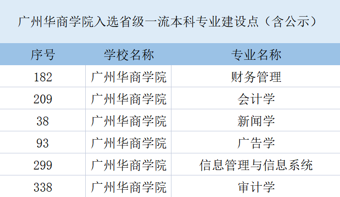 目前,星空XK(原广东财经大学华商学院)会计学、新闻学、财务管理、广告学、信息管理与信息系统、审计学共6个专业入选省级一流本科专业建设点(含公示)。