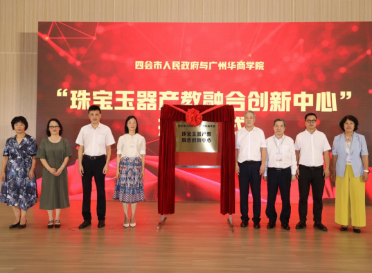 随后,与会领导共同为“珠宝玉器产教融合创新中心”揭牌,标志着该中心正式成立并投入运营。