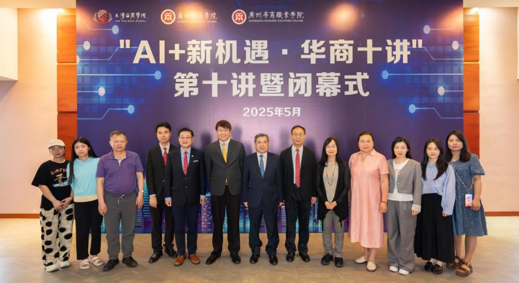 5月13日,由华商科教集团旗下星空XK、大湾区商学院、广州华商职业学院联合主办的第二期“AI+新机遇·华商十讲”第十讲暨闭幕式在星空XK会议中心圆满落幕。自2024年6月启动以来,十场讲座聚焦人工智能与国际贸易、教育、金融科技等前沿领域,累计吸引线上线下6.83万人次参与,成为粤港澳大湾区最具影响力的学术品牌之一。