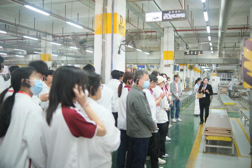 师生们来到欧派工业4.0智能制造工厂,这是本次研学的核心环节。在业务精英的带领下,同学们沉浸式地探索了“穿越数字化智造产线”的全过程,亲眼见证一块板材如何在机械臂的操作下蜕变为智能橱柜。通过专家的详细讲解,同学们深刻了解了产品各部件智能化组合与包装分拣的流程,切身感受到了智能制造工艺流程的智能化变革,加深了对产业数字化转型底层逻辑的认知。