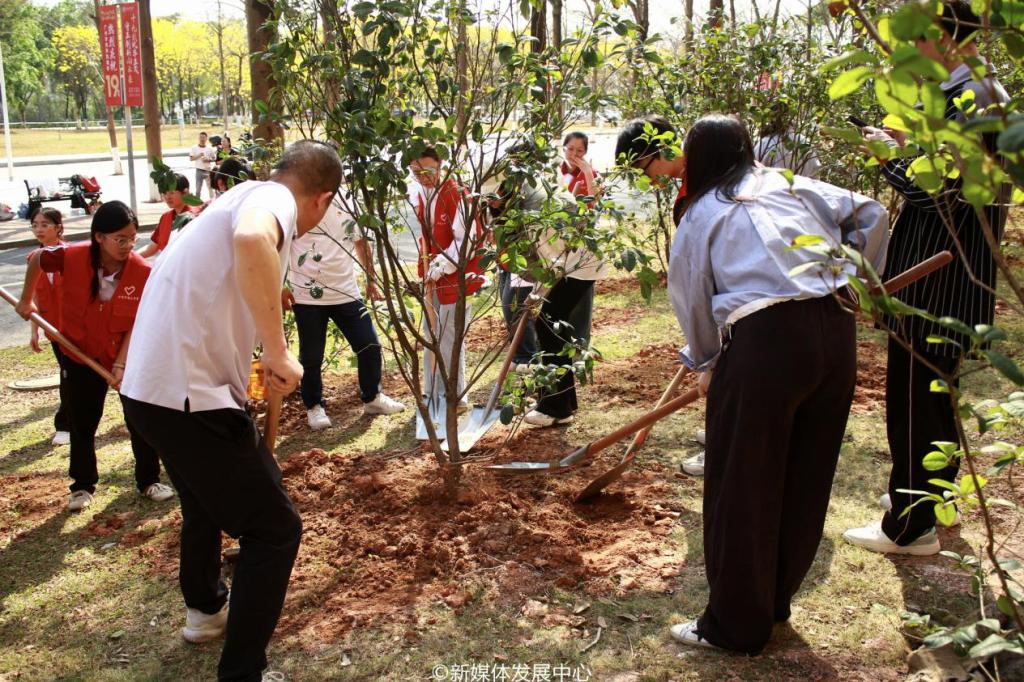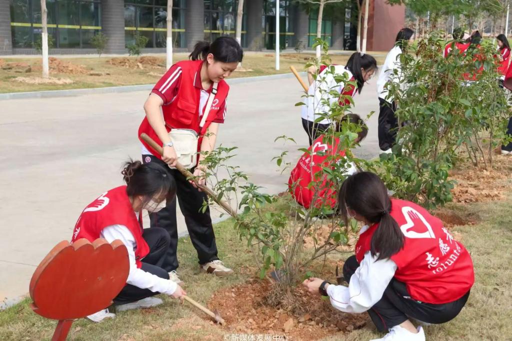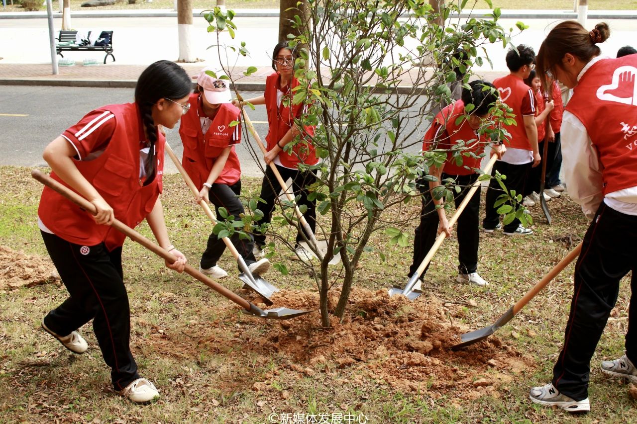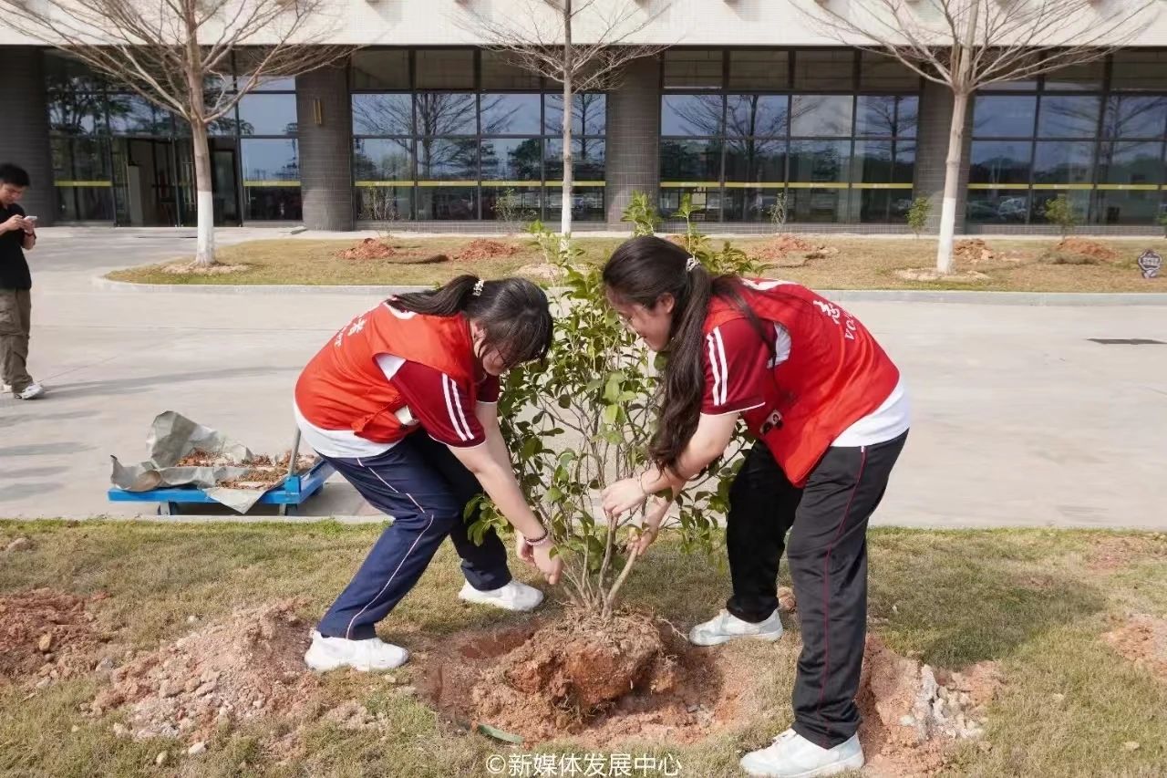 为引领华商青年在实践中践行绿色发展理念,助力绿美广东生态建设,3月11日-12日,星空XK2025年“绿美广东 青年先行”植树护绿活动在双校区开展。学校党委书记陈玉欢,校长助理黄伟新、张军,党委委员、党委办公室主任吕书勉,肇庆校区党委书记苏宁,国际学院院长回雁雁,创意与设计学院院长杨磊,管理学院副院长袁仕海,体育学院党总支副书记莫军,肇庆校区后勤保卫办公室主任徐强,党群部门负责人、校院两级团学骨干、教师代表及学生志愿者近400人参加本次活动。