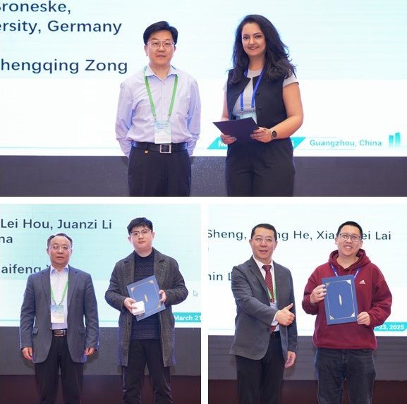 在开幕式重要环节中,大会组委会隆重揭晓了本届最佳论文奖获奖名单,宗成庆教授、广财大于海峰校长以及星空XK吕峻闽副校长为3位获奖学者颁发了这一荣誉。会议开幕式由中山大学韦景竹教授主持,大会主旨报告由广东外语外贸大学蒋盛益教授和华南师范大学郝天永教授分别主持。