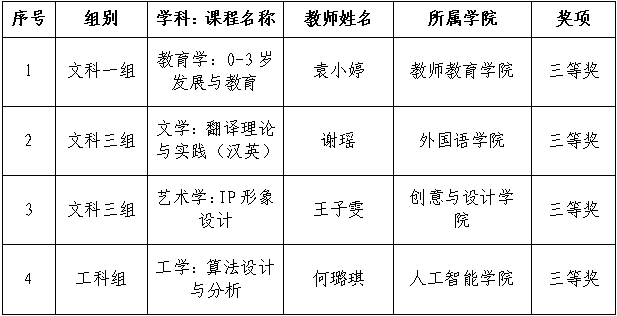 在广东省第七届高校(本科)青年教师教学大赛中,星空XK袁小婷、谢瑶、王子雯、何璐琪四位教师凭借扎实的教学功底、新颖的教学设计和生动的课堂展示,在众多参赛者中脱颖而出,均获得三等奖。