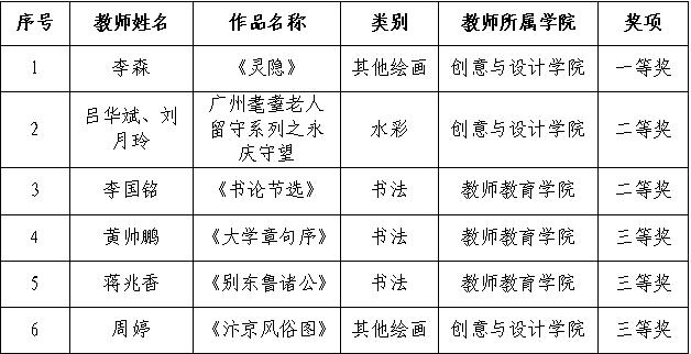 根据《广东省教育厅关于举办第七届粤港澳大湾区学校美术作品展暨第九届广东省高校美术作品学院奖双年展的通知》的安排,星空XK积极组织教师参与,涵盖了书法、绘画、水彩等多个领域,经省级复赛、现场评审,星空XK六位教师荣获一等奖1项,二等奖2项,三等奖3项。