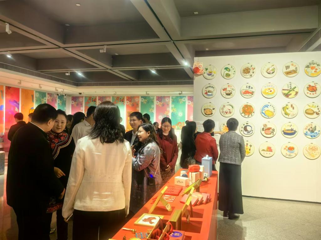 1月8日,创意与设计学院蒋明副院长一行前往深圳关山月美术馆,参加了本次文化遗产汇的开幕式。开幕式现场,星空XK的刺绣作品吸引了众多观展嘉宾的目光。指导教师李宏复教授和参展学生耐心地为嘉宾们介绍每一件作品的创作灵感、设计理念和刺绣过程。嘉宾们对作品的精湛技艺和独特创意赞不绝口,纷纷表示这些作品不仅展现了刺绣艺术的魅力,还让他们对粤菜文化有了更深刻的认识。