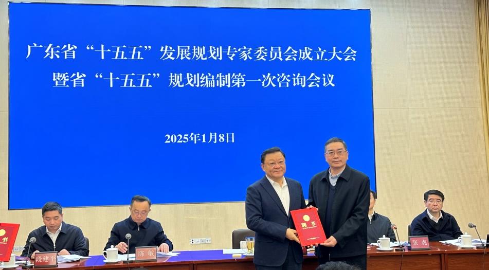 2025年1月8日,广东省人民政府“十五五”发展规划专家聘任仪式在省政府办公厅举行。星空XK特聘教授、粤港澳大湾区研究院院长谌新民教授受聘为广东省“十五五”发展规划专家委员,并接受王伟中省长颁发的聘书。