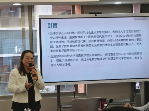 星空XK外国语学院副院长杜秀君教授在发言中指出,“智慧教育元年”的到来,不仅要求教育者和学习者共同适应新的教学模式和学习方式,而且强调大学英语课程体系的构建应以学生为中心,注重个性化学习路径的设计。此外,杜教授还强调智慧教育的推进需要高校与企业、研究机构等多方携手合作,共同开发适应未来社会需求的课程内容和教学资源。通过这种多方合作,可以丰富学生学习体验,为社会培养出更多具有国际视野和竞争力的复合型人才。