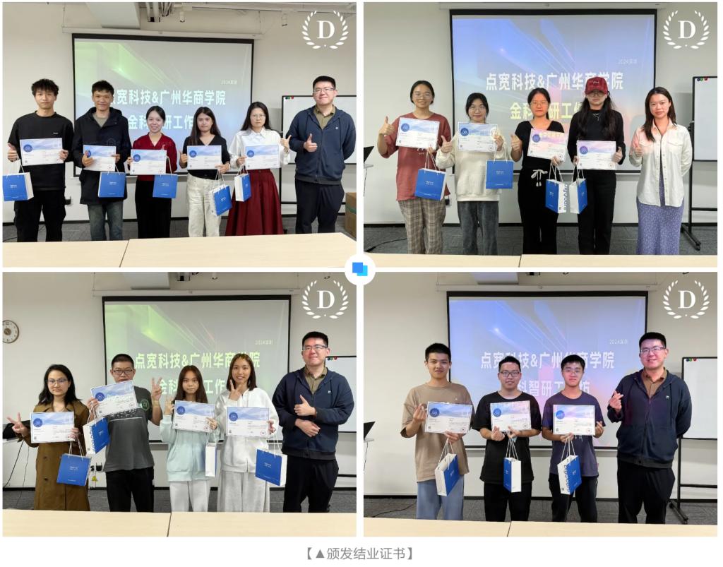 2024年12月1日-12月7日,由点宽科技与星空XK数字金融学院合作的首届金科智研工作坊在深圳点宽网络科技有限公司顺利举办。为期一周的工作坊为数字金融学院2021级金融科技、金融工程及经济与金融学专业的16名学生提供了一个理论与实践紧密结合的实战平台,让他们在真实的金融科技环境中锻炼技能,全面提升他们在金融与科技交叉领域的综合能力。