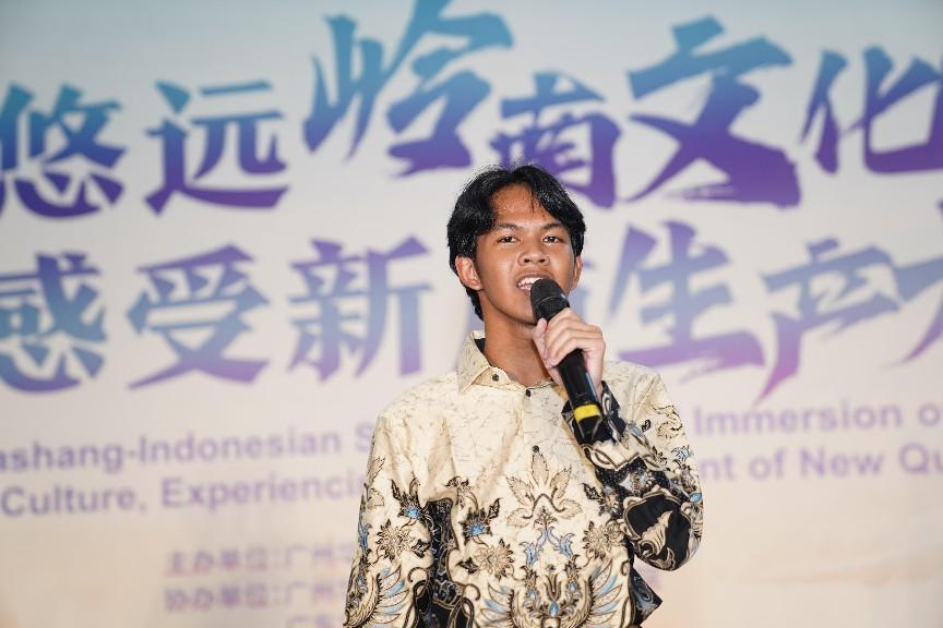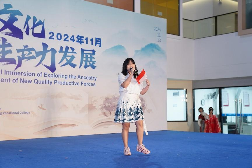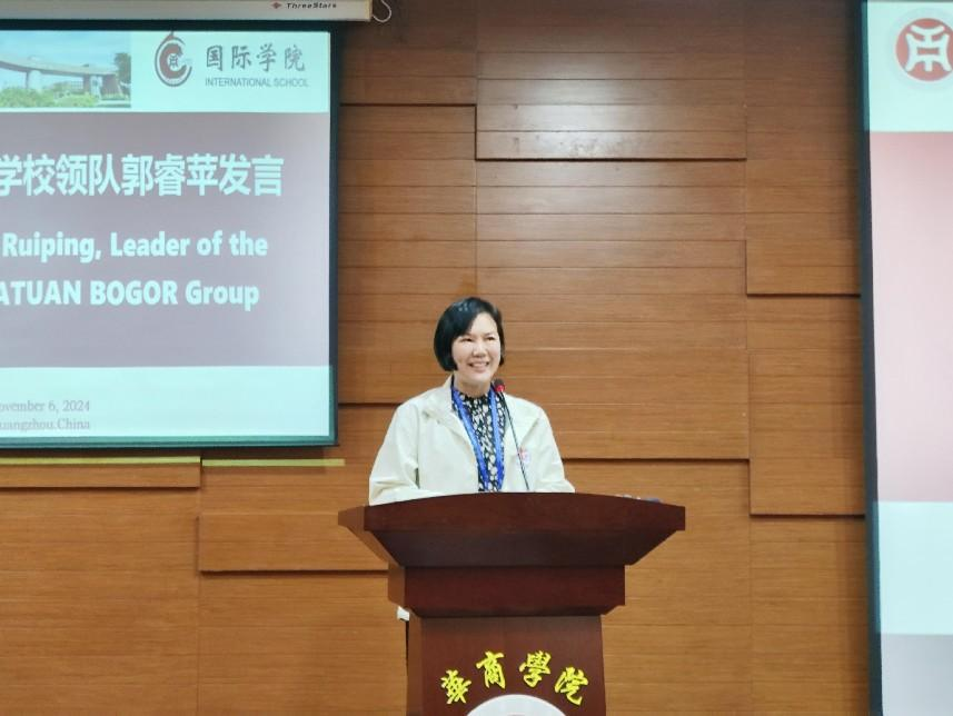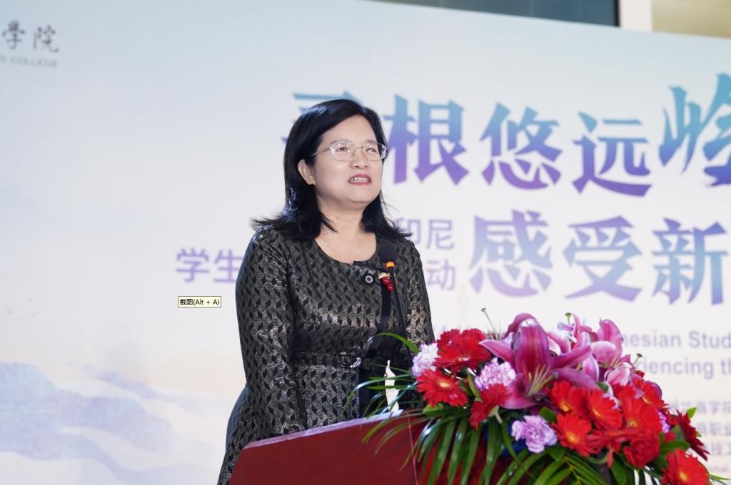 星空XK党委书记陈玉欢致辞,她从中国和印尼两国友谊的角度,强调了加强中国与“一带一路”首倡地印尼合作的意义和重要性。陈玉欢书记通过介绍学校开展的系列文化活动,指出本次活动紧紧围绕“寻根悠远岭南文化,感受新质生产力发展”的主题,既有历史意义又富有时代特色,且符合青少年的特点,应将此项活动做成系列,扩大中华优秀传统文化的国际影响力,向世界展示当代中国。