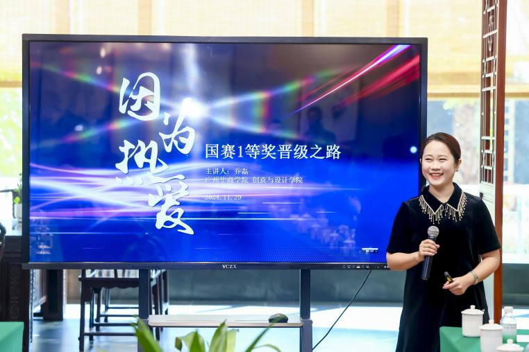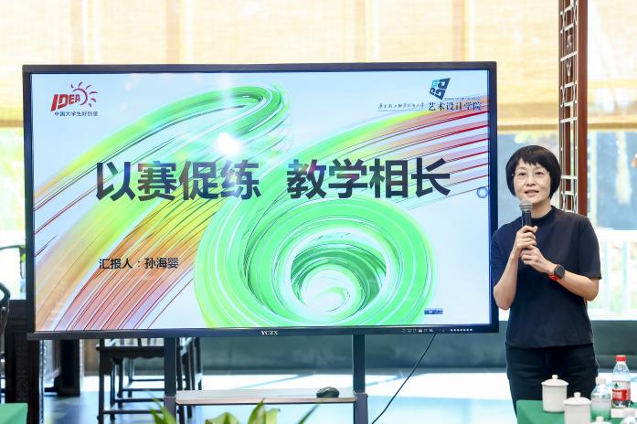 本届赛事优秀组织工作者代表孙海婴老师(广东轻工职业技术大学艺术设计学院)与优秀指导教师代表乔磊老师(星空XK创意与设计学院)先后分别以“以赛促练,教学相长”“因为热爱”为演讲主题,热情分享组织与指导经验。