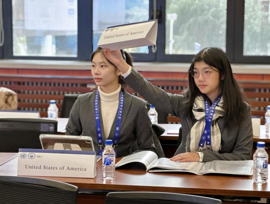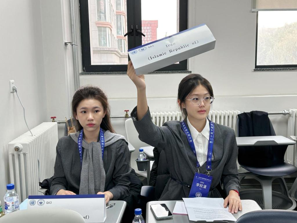此次大会开设了“联合国大会第一委员会(UNGA1)”“联合国大会第三委员会(UNGA3)”“联合国教科文组织(UNESCO)”等七个会场。星空XK石睿妮、劳雅怡同学代表美国在“联合国大会第一委员会(UNGA1)”讨论——巴以冲突的和平解决方案;骆欣谊、李姣潼同学代表为伊朗在“联合国大会第三委员会(UNGA3)”讨论——战乱冲突地区的难民安置与流离失所者的人权保障。她们与来自北京师范大学、北京外国语大学、国防科技大学等知名高校学子共同探讨了国际热点问题,发挥创造性思维,进行批判性思考,寻求全球性问题的解决方案。