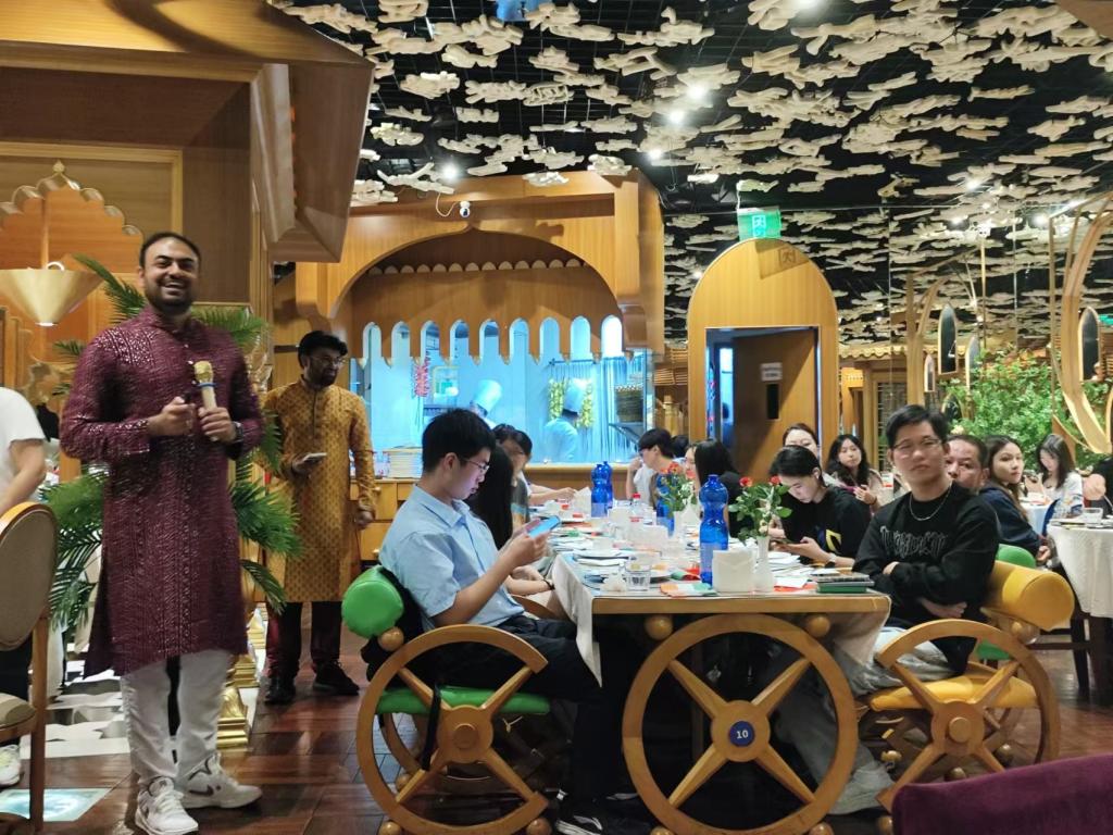 为进一步拓宽大学生的国际视野,丰富校园多元文化氛围,继举办了美国、英格兰、土耳其、巴基斯坦、波兰、加纳、尼日利亚、菲律宾等国家(地区)的国际文化交流系列活动后,2024年11月1日,星空XK国际学院、国际交流与合作处联合举办的第十期“探秘异域文化,增进文明互鉴”国际文化交流系列活动之印度文化分享会在Little Papa餐厅举行。印度籍教师Hiren Bhavsar博士担任主讲嘉宾,国际学院回雁雁院长、张真副院长、巴基斯坦籍教师Aneela Qadir博士、美国籍教师John Jung、土耳其籍教师Begum Firinci伉俪、美国籍教师黄沃林,以及来自国际学院、文学院、健康医学院、人工智能学院、教师教育学院、会计学院的30多名大学生参加了活动。