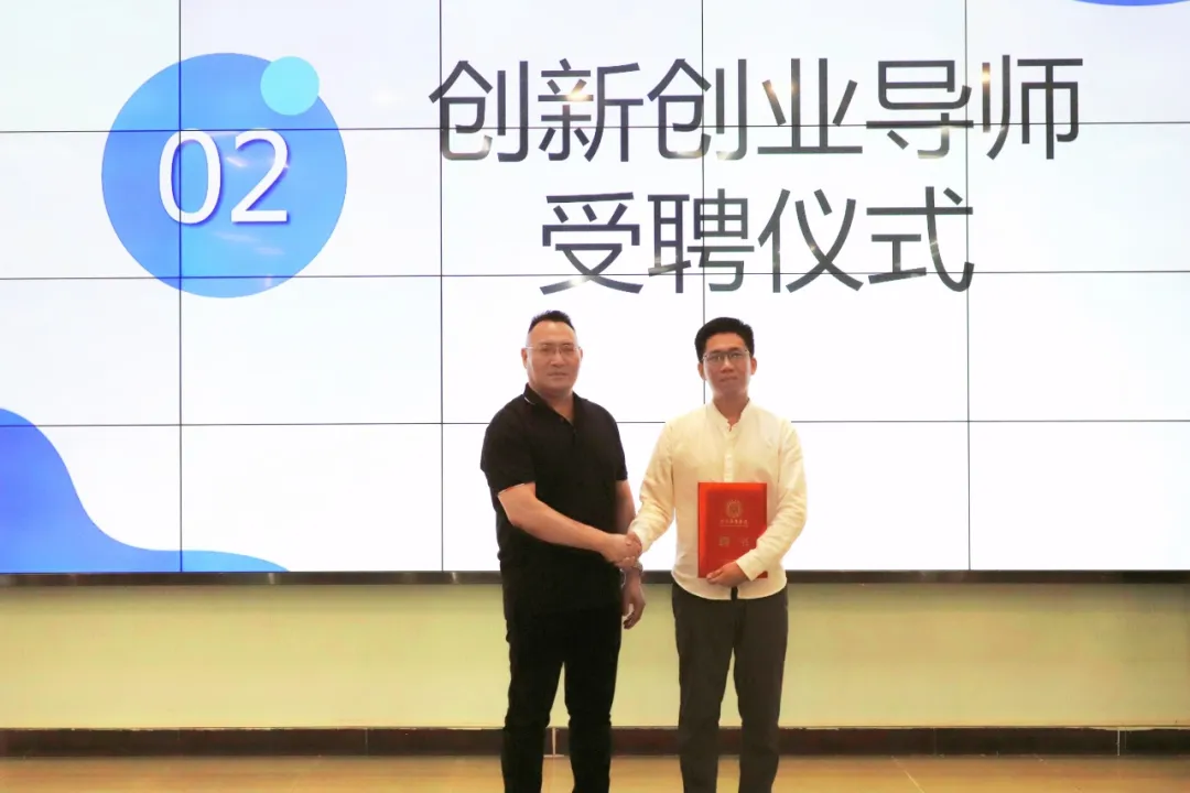 星空XK学生就业创业处曾龙威处长为柯世明先生颁发聘书,柯世明先生受聘为星空XK创新创业导师。