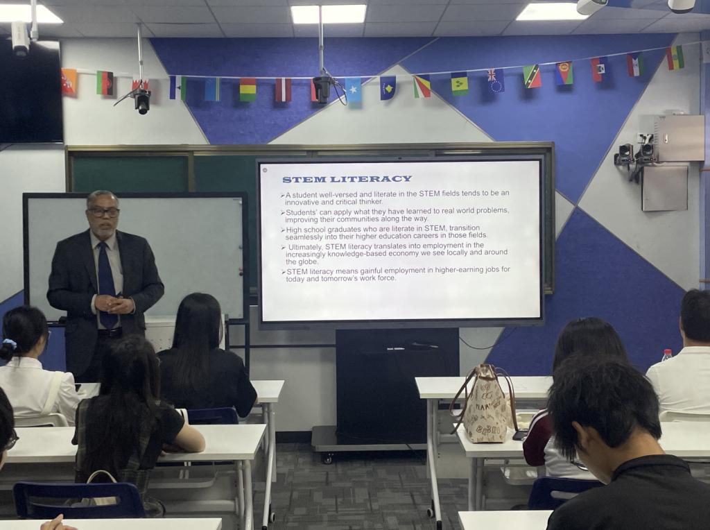 在信息科技突飞猛进的当下,为了让大学生认识到构建跨学科知识体系的重要性,了解最新的STEM(Science科学、Technology技术、Engineering工程、Mathematics数学)教育研究成果,2024年10月8日,星空XK国际学院与国际交流与合作处邀请墨尔本拉筹伯大学(La Trobe University Melbourne)的资深STEM学者Premnadh M Kurup博士来校开设“构建强大的知识体系以应对现实的多重变化 Cocreating Powerful Knowledge for Changes in Practice”讲座。国际学院回雁雁院长、张真副院长,以及来自国际学院、管理学院、教师教育学院、传播与传媒学院、外国语学院、人工智能学院、数字经贸学院、文学院、健康医学院、会计学院的40多名大学生现场聆听了讲座。