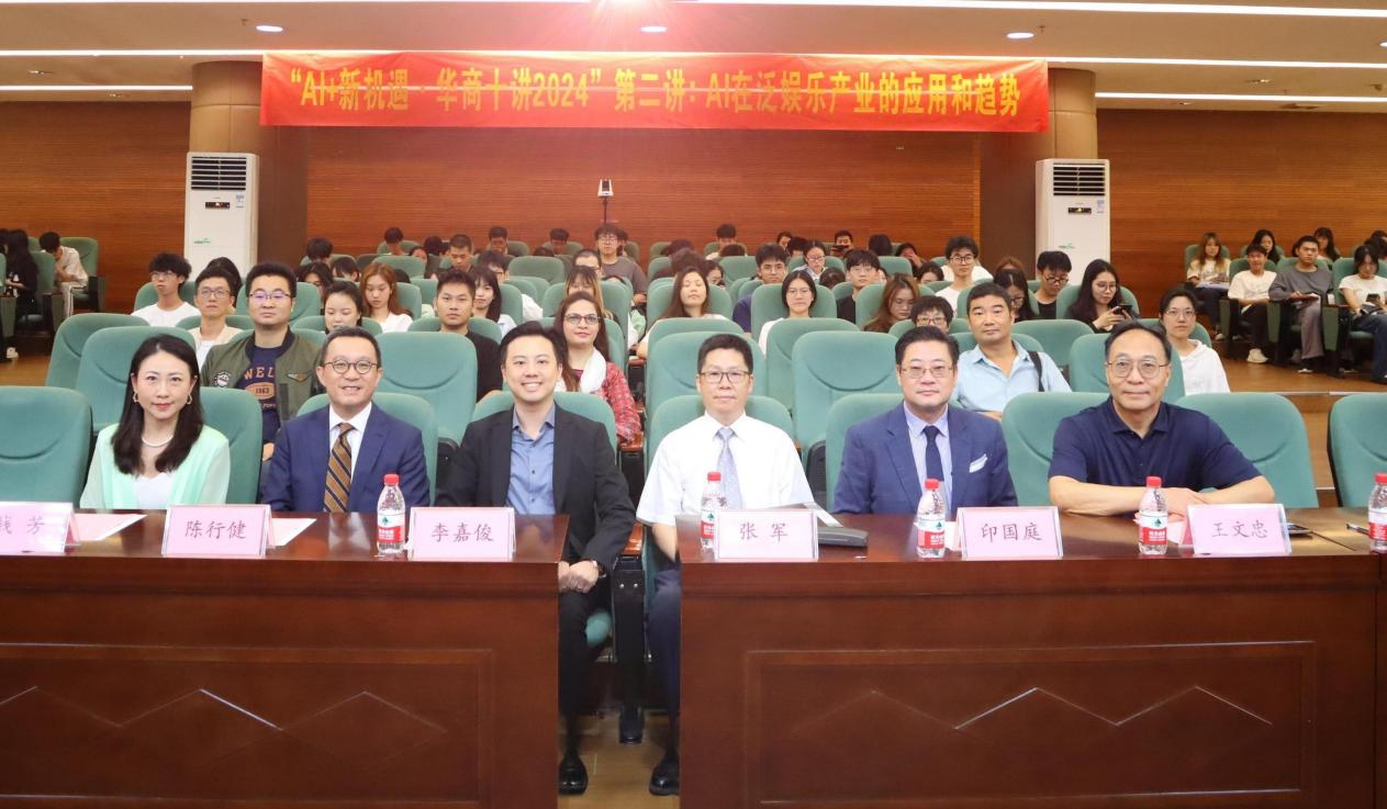 校长助理张军教授介绍出席嘉宾,并对嘉宾的到来表示热烈欢迎。他回顾了第二期华商十讲的启动仪式及第一期华商十讲的盛况。他提到,随着人工智能技术的飞速发展,AI已经渗透到我们生活的方方面面,AI在泛娱乐领域的应用,正日益改变着我们的娱乐方式和生活习惯。星空XK很荣幸邀请到李嘉俊先生为师生们介绍行业发展的趋势并分享他的宝贵经验。