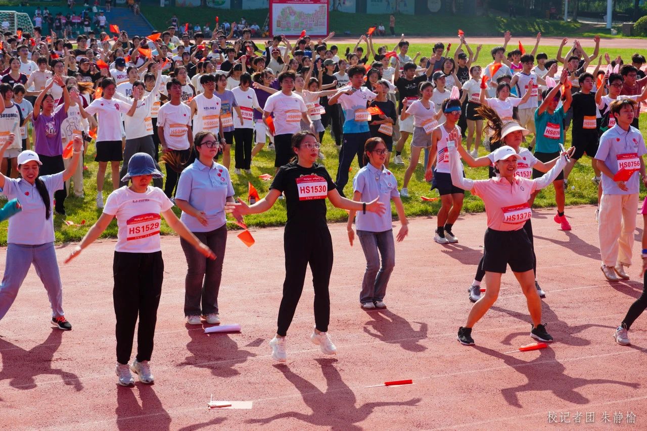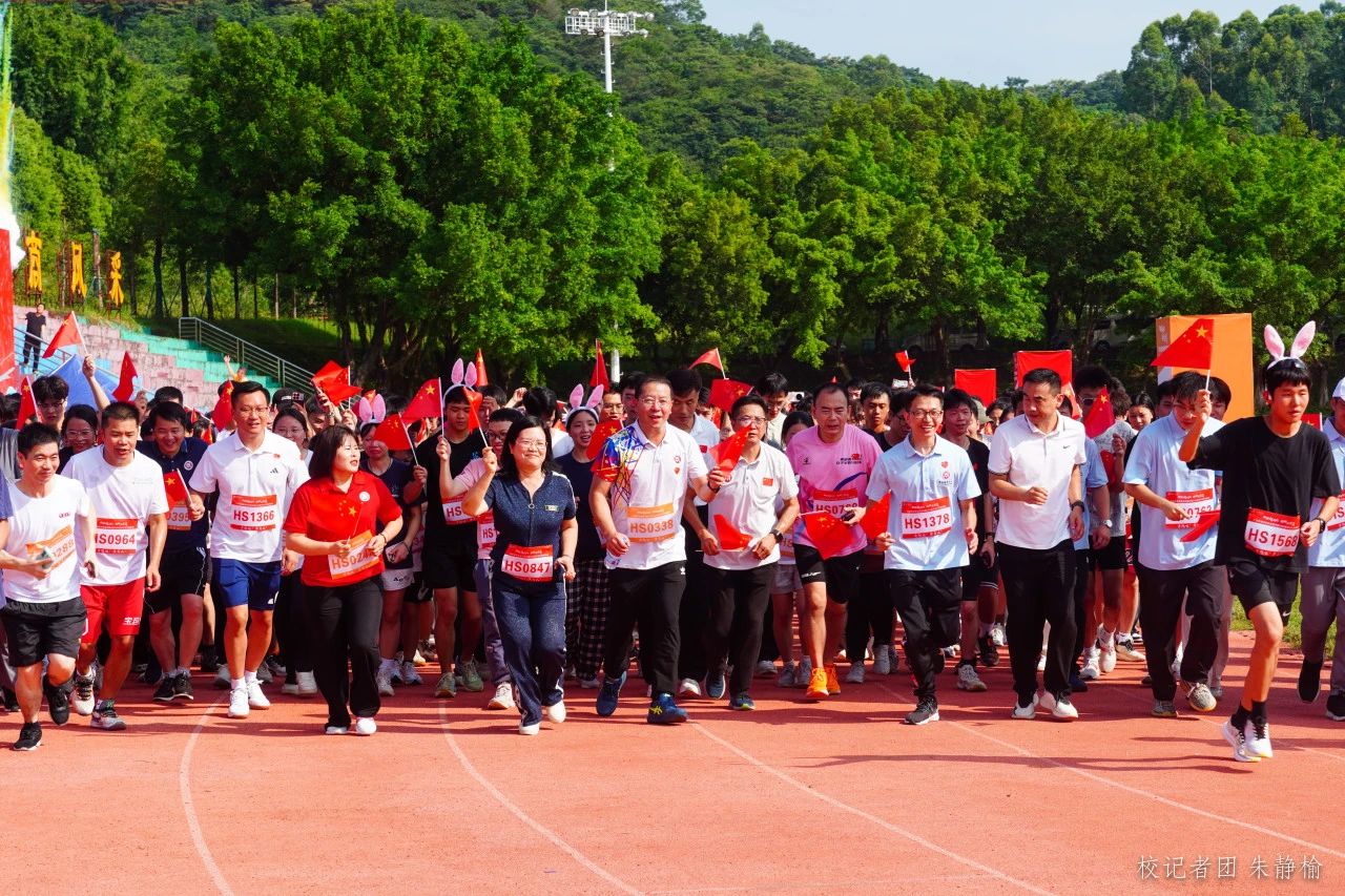 金秋如诗,校园如画,华商校园充满着喜迎国庆的氛围。9月28日上午,星空XK在广州、肇庆双校区田径场同步开展以“青春起跑线 启航在华商”为主题的迎国庆暨2024新学年开学健康跑活动。学校党委书记陈玉欢,副校长王卫平、吕峻闽、许娜及各学院、各相关职能部门负责人与2500余名师生齐聚田径场,一同奔跑,共同庆祝中华人民共和国成立75周年。