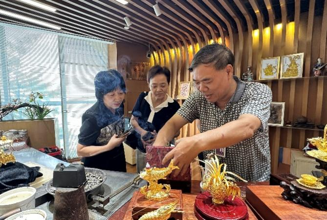 朱院长一行受到周大福珠宝集团大师工作坊项目总监何冠寰及讲解员的热情接待。在周大福顺德匠心智造中心,朱院长一行了解了周大福自创立以来的辉煌历程及发展情况,近距离观摩了钻石的镶嵌与打磨,黄金的批花与抛光等工序,目睹了工匠大师们如何凭借高超技艺与精密工具,将黄金打造成精细、华丽的艺术珍品,见证了珠宝从原料到成品的华丽蜕变,每个环节都透露出周大福对品质和工艺的极致追求。