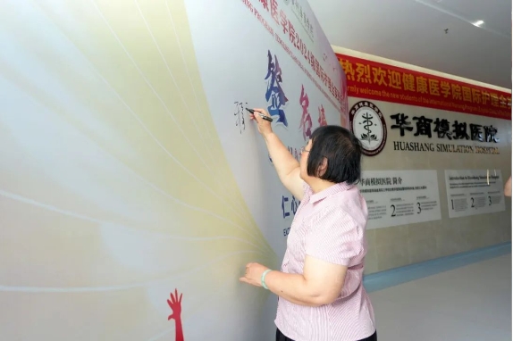 校领导亲切慰问迎新工作人员,了解新生报到进展情况,并与报到新生及家长亲切交流,详细询问新生们的入校感受、学习规划,勉励新生们尽快融入充满国际化氛围的学习环境,珍惜在华商学院的宝贵时光,不负青春韶华,秉持医者仁心,不仅要在英语学习上精益求精,更要在医学知识与技能上追求卓越,努力成长为具有国际视野、医德高尚、医术精湛的护理精英,为国际护理事业贡献华商人的力量。