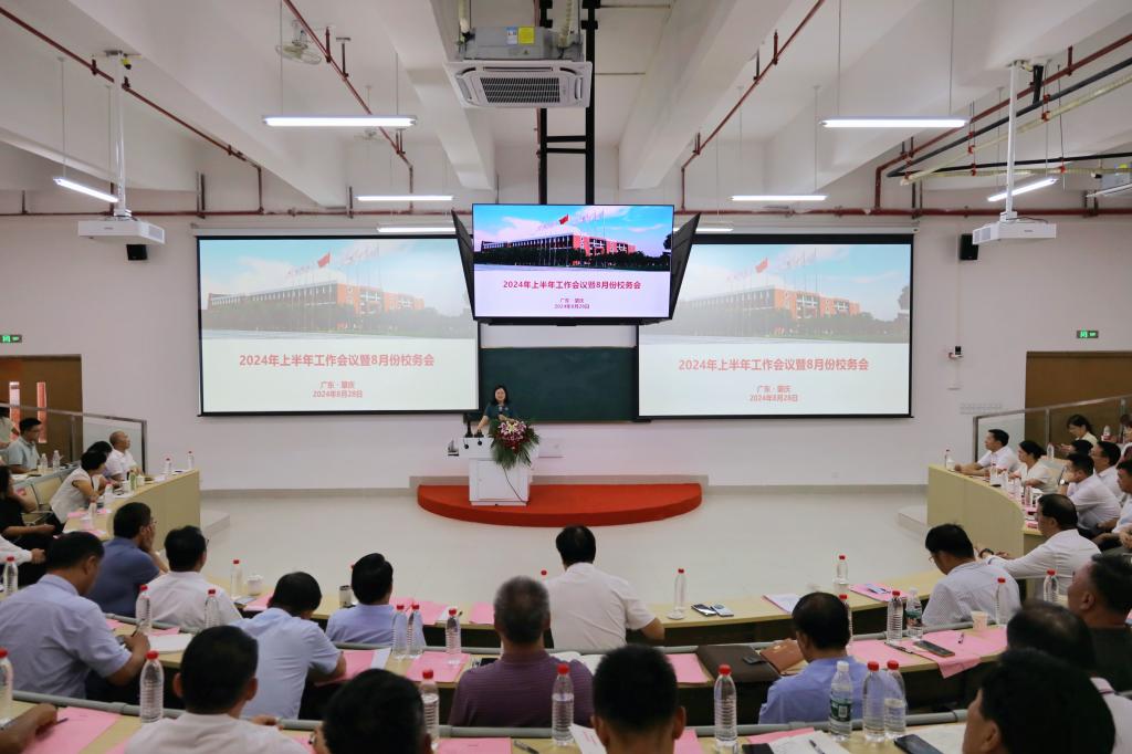 陈玉欢书记作总结部署。她指出,上半年学校聚焦“强基固本、提质增效,开创学校高质量发展新局面”工作主题,团结带领各级领导干部和全体教职工牢记使命、奋进担当,各项事业发展取得较好成绩,并从党的建设、双迎工作、内部治理、教学科研、学生工作等几方面总结了上半年工作亮点,各项事业取得了不错的成绩:一、抓实党建工作,充分发挥引领作用,构建思政工作大格局;二、抓严合格评估,推进全面进步;三、抓好校庆筹备,稳步推进工作,进一步落实十大工程;四、抓强招生就业,工作成效显著,圆满完成各项招就工作;五、抓准人事管理,夯实人才保障,多措并举推进人才强校战略;六、抓深教学科研,促进内涵发展,进一步强化教育教学改革;七、抓细学生工作,助力学生成才,构建育人大格局;八、抓牢产教继教,打造办学特色,进一步探索发展新模式;九、抓紧校园治理,构建和谐校园,确保各项事业安全规范合法;十、抓活学院管理,工作亮点纷呈,展现育人特色。在肯定成绩的同时,陈书记指出,必须清醒地认识到目前工作中存在对合格评估工作认识不足、安全责任落实不到位等问题,希望各单位结合自身实际,明确问题、落实制度、严格整改。