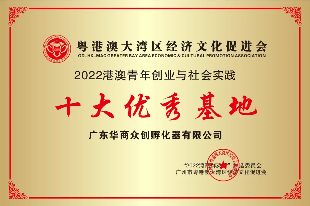 华商众创孵化基地荣获广东省创新创业教育实践基地、广州市创业孵化基地、广州市科技企业孵化器、侨梦苑国家级华侨华人创新创业分园区、侨梦苑广州市增城区港澳台青年创新创业基地、增城区创新创业(孵化)示范基地、大湾区湾商十大港澳青年实践基地、增城区高层次人才创新创业基地、广州市增城区新的社会阶层人士联谊会华商学院创新创业基地等多项荣誉。