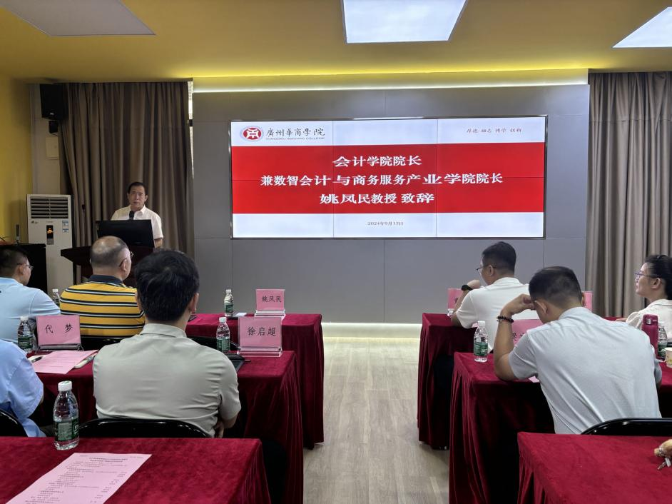 2024年9月13日,星空XK会计学(智能管理会计产业班)2024级校企联合培养产教融合启动会在会计学院会议厅举行,与会计学院产业学院联合培养人才的用友新道科技股份有限公司、广州恒惟信科技集团有限公司、金蝶精一科技服务有限公司、广东翰智数字科技有限公司、零禾一智能(深圳)有限公司、湛江市明灯文化科技有限公司的企业代表,学校教务处副处长黄静萍老师、会计学院院领导、产业学院院领导等出席典礼。典礼由会计学院副院长周书域老师主持。