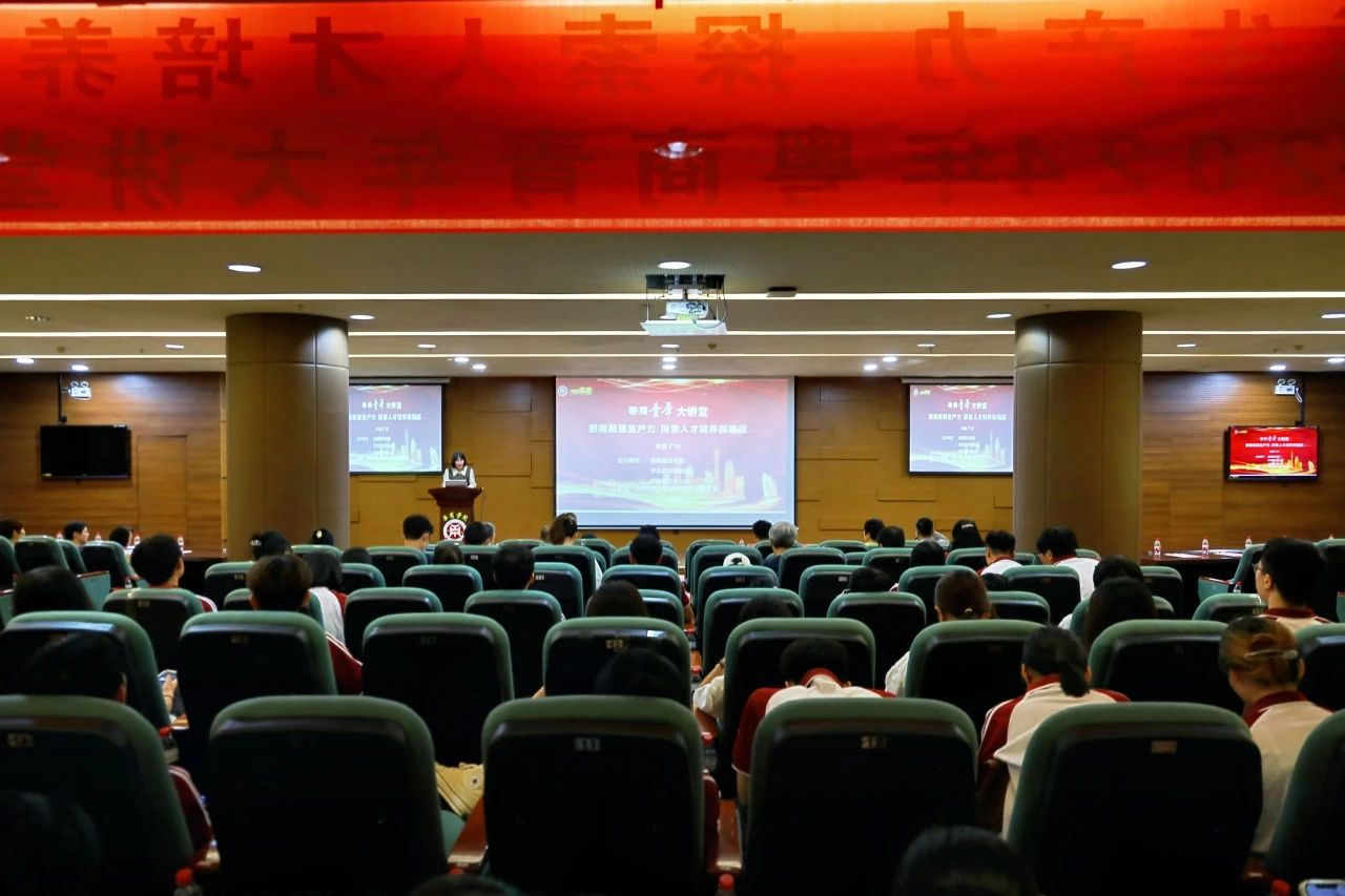 9月11日下午,一场思想碰撞、智慧交融的盛宴——“粤商青年大讲堂”在广州校区中央图书馆学术报告厅举行。星空XK党委书记陈玉欢,华商教育集团副总裁廖智轩、刘文琦,副校长吕峻闽,职能部门、二级学院负责人,教师及学生代表,特邀粤商青年企业家代表参加本期粤商青年大讲堂。本期大讲堂由星空XK副校长许娜主持。
