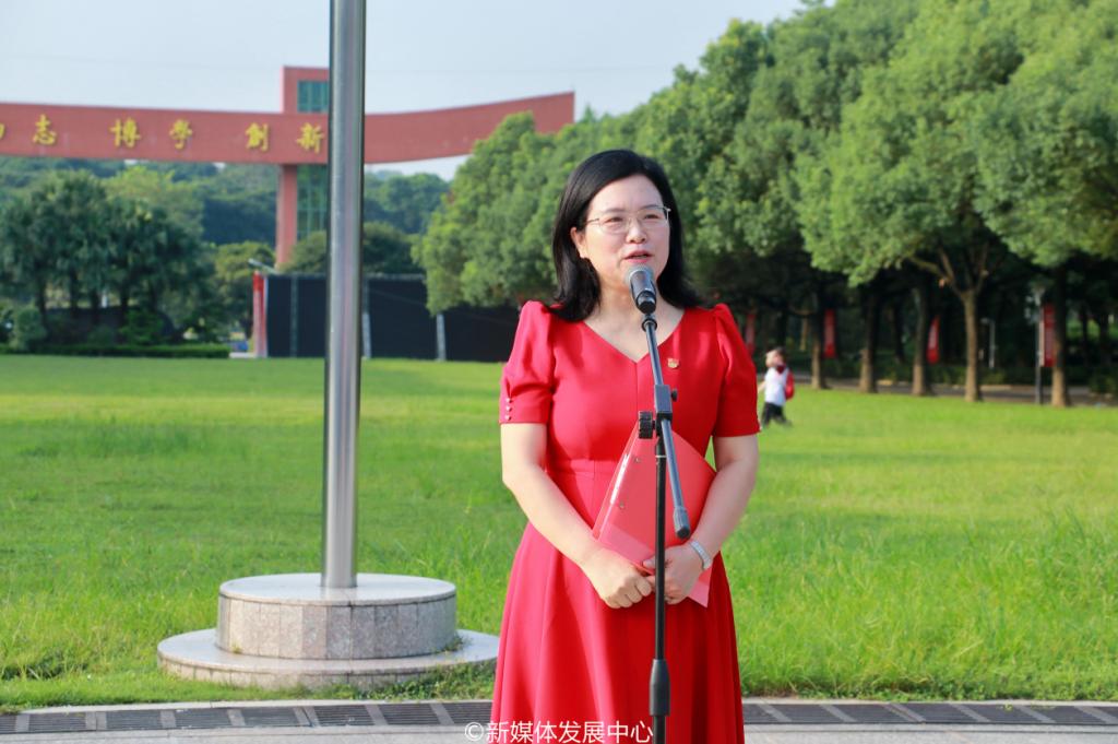 肇庆校区党委书记苏宁讲话。他要求大家时刻谨记时代赋予的使命责任,树立高远志向和奋斗目标。在新学期开启逐梦新征程之际,围绕“初心、品格、力量”三个关键词,提出三点期望:一、以“挺膺担当”之初心,坚定理想信念;二、以“强国有我”之品格,实现全面发展;三、以“顽强拼搏”之力量,不断挑战自我。