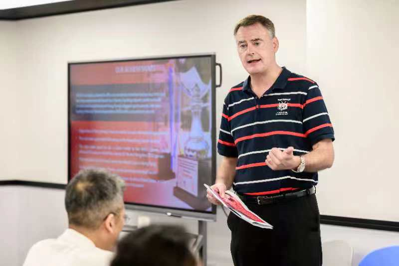 香港橄榄球总会CEO Robbie McRobbie介绍了桑德兰大学与中国香港橄榄球总会合作情况及该协会的历史、成就及使命等,该协会在雅加达2018年和杭州2022年亚运会上均获得第一名,是唯一在亚运会上赢得金牌的团队,也是首个利用体育运动解决社会问题、运营慈善机构的体育总会,是唯一获得绿色户外活动认证的体育总会,也是联合国体育应对气候变化框架的签署方。