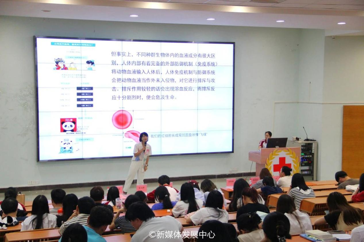 黄斯瑜老师以通俗易懂的语言、生动的案例及随堂问答,围绕无偿献血的意义、献血与健康、血液相关知识、无偿献血注意事项进行详细阐述,通过展示一些真实的献血者故事和图片,让大家更直观地了解献血的过程和实际意义。她还特别强调了无偿献血背后包含的人道主义精神和社会责任感,每一次献血都是对生命的珍视和尊重。