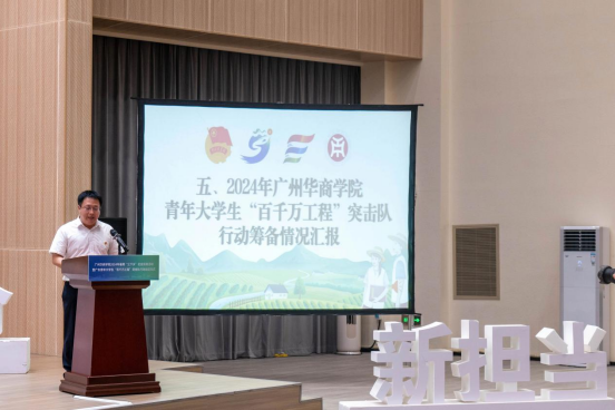 为认真贯彻落实习近平总书记五四重要寄语精神,贯彻落实党的二十大精神,落实省委、省政府关于实施“百千万工程”工作部署,引导和帮助华商青年成长为担当民族复兴大任的时代新人,6月30日,校团委在肇庆校区报告厅组织开展星空XK2024年暑期“三下乡”社会实践活动暨广东青年大学生“百千万工程”突击队行动出征仪式。仪式由校团委副书记陈巧巧主持。