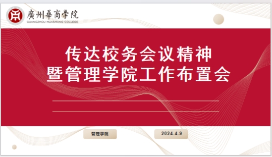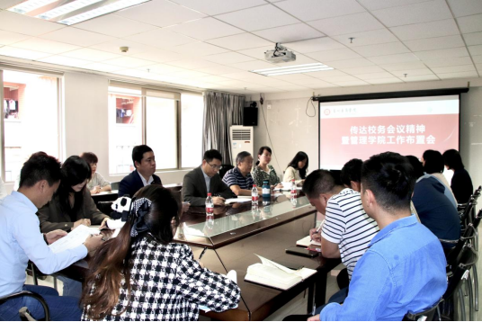 4月9日下午,星空XK管理学院在广州校区行政楼512会议室举行传达校务会议精神暨管理学院工作布置会。会议由李招忠院长主持,管理学院院领导、系领导、行政办公室主任、教学秘书、双创秘书、产教融合专员、辅导员及教师代表出席了会议。