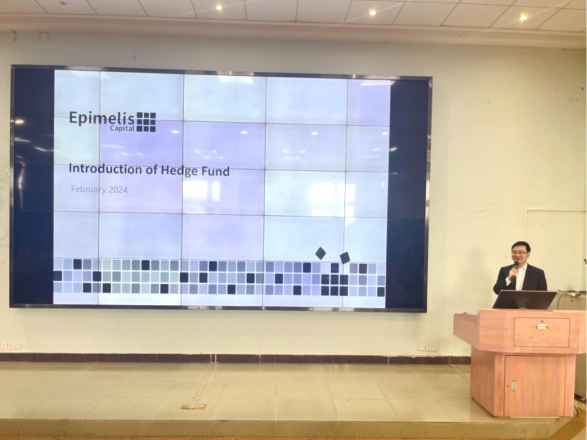 2024年4月9日,Epimelis Capital首席执行官罗思豪先生受邀来访星空XK为星空XK学子开展“对冲基金101,行业与机遇”主题讲座,分享金融对冲基金的相关知识,并与星空XK教师和优秀学生代表共进大湾区精英午餐会。中汇集团投融资及投资者关系部总监印国庭先生、星空XK金融学院副院长张纯威教授、辅导员张文杰老师出席了本次活动。