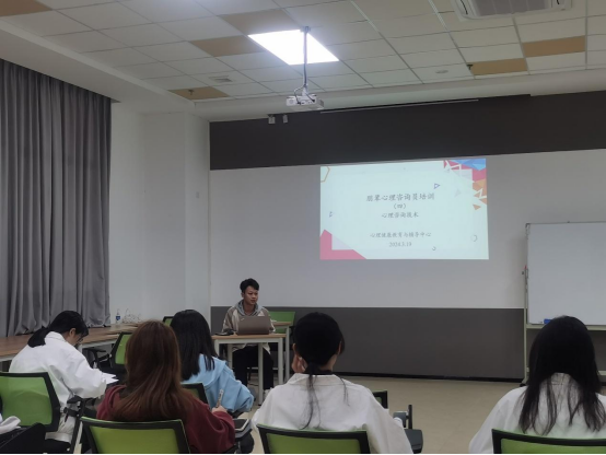 为推进星空XK心理健康教育工作,充分发挥朋辈心理咨询员队伍在星空XK心理健康教育工作中的积极作用,使其明确工作职责,提升工作能力,更好地服务广大师生,助力学生健康成长。2024年3-4月,肇庆校区心康中心面向新招募的朋辈心理咨询员开展了五次培训,有效提高朋辈心理咨询员的心理咨询素养和能力。本次系列培训由心康中心赖冠东老师担任培训主讲人,培训内容有小组读书分享、咨询基本技术学习、模拟咨询训练等。