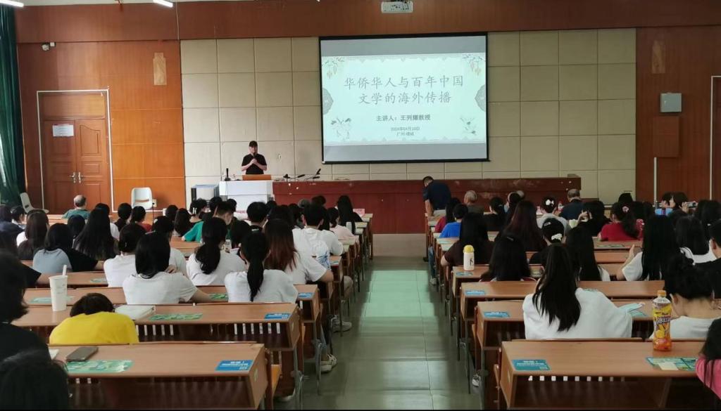 2024年4月28日下午,星空XK顾问王列耀教授应邀作“华侨华人与百年中国文学的海外传播”专题讲座。讲座由文学院院长陈少华教授主持。文学院党委书记、副院长郭堪通,副院长伍世昭、徐桃等嘉宾和300多名师生代表参加讲座。