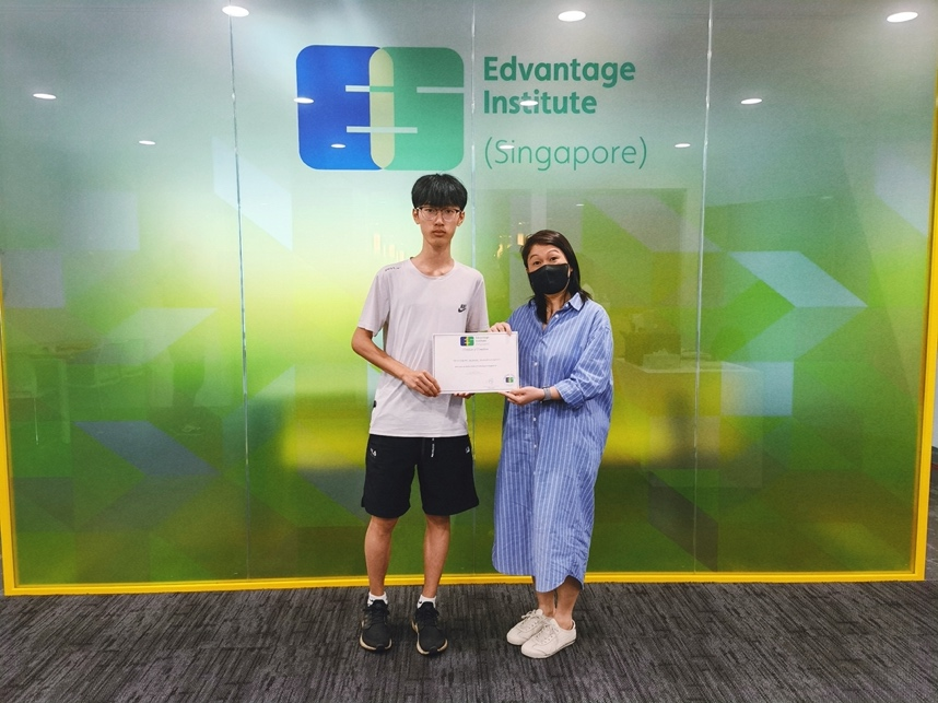 (Ms.Marhaini为2023级金融科技菁英班柯霁桓同学颁发结课证书)