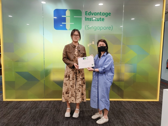 在2023级金融科技菁英班金融科技海外研修课程的结课仪式上,新加坡中汇学院(Edvantage Institute Singapore,以下简称EIS)负责人Ms.Marhaini代表EIS为2023级金融科技菁英班的同学们颁发了金融科技海外研修课程的结课证书。