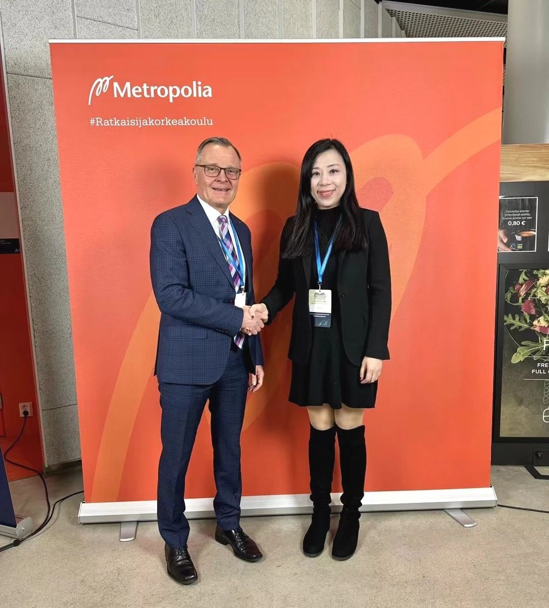 (星空XK副校长廖伊曼博士与芬兰应用科学大学校长联盟主席Riitta Konkola博士合影)