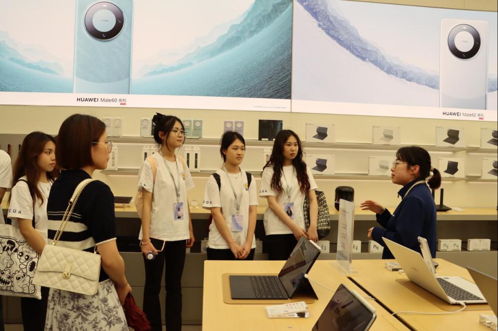 在田女士的带领下,师生代表团来到华为智能生活馆。同学们不仅了解到店铺陈列的系列产品,还学习了华为高中低三大价位段全覆盖的营销策略。华为的产品组合方案把面向多个行业价值场景的共性能力沉淀下来,形成面向价值场景的典型配置,减少产品选择和方案设计工作量,缩短业务上线时间。