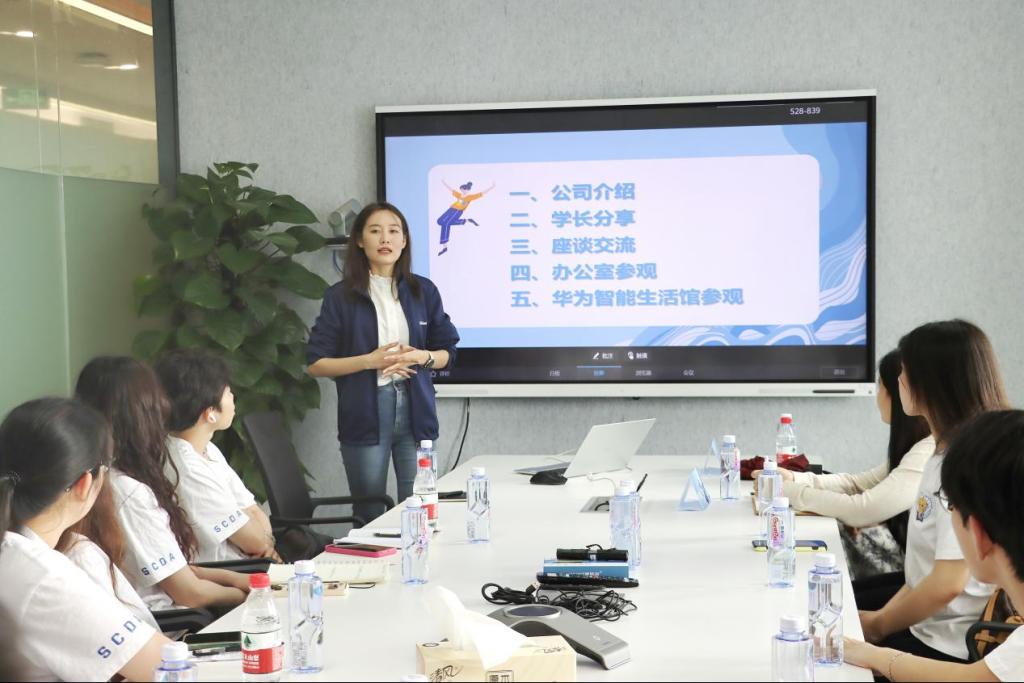 深圳慧通商务有限公司广州区域HR田女士为星空XK师生代表整体介绍了华为的愿景,使命,合作,发展历程等。与此同时,她也向同学们发出诚挚邀请,希望可以有更多优秀的华商学子能够加入华为慧通,在华为慧通多样的平台中实现自己的梦想。