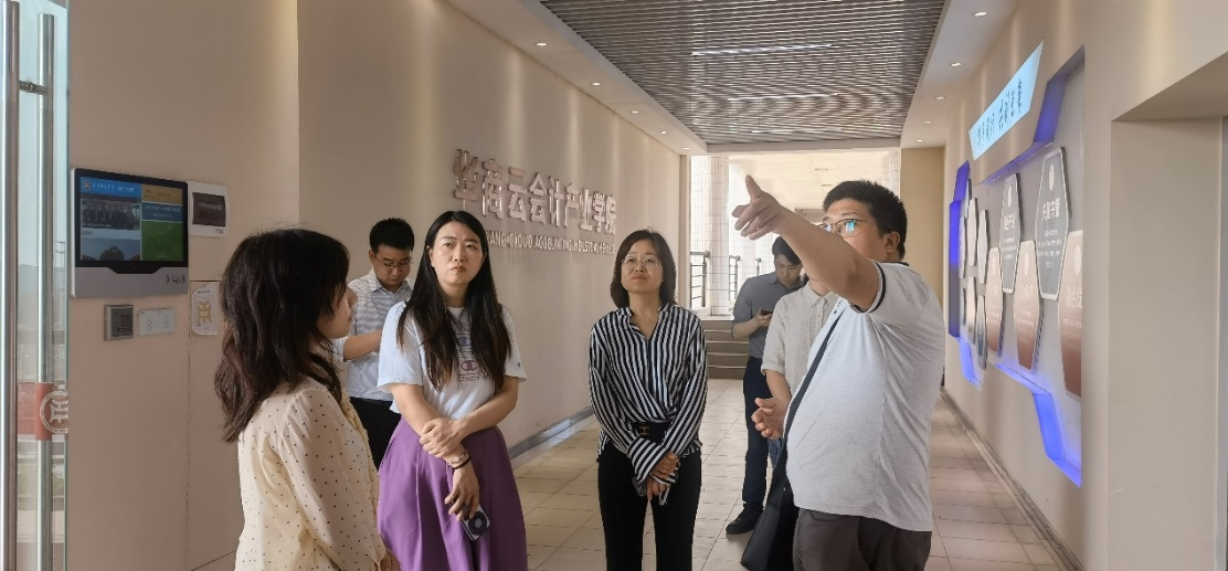 交流会结束后,李亚荣副院长一行参观了星空XK经管类跨专业综合仿真实习平台、金融科技实验平台、大数据及人工智能交互体验中心、华商云会计产业学院等实验平台。
