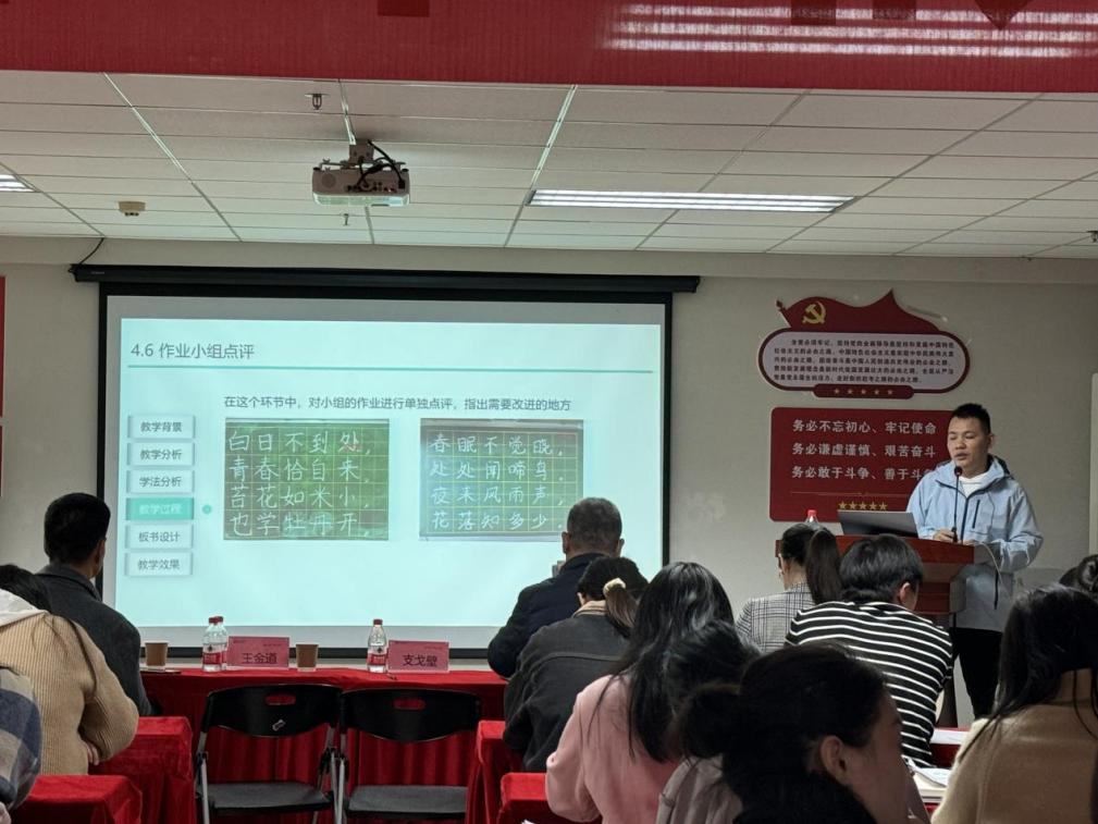 李国铭老师以《粉笔楷书基本笔画训练》为课题,通过对学生的了解,制定教学方案,培养学生的教学技能。