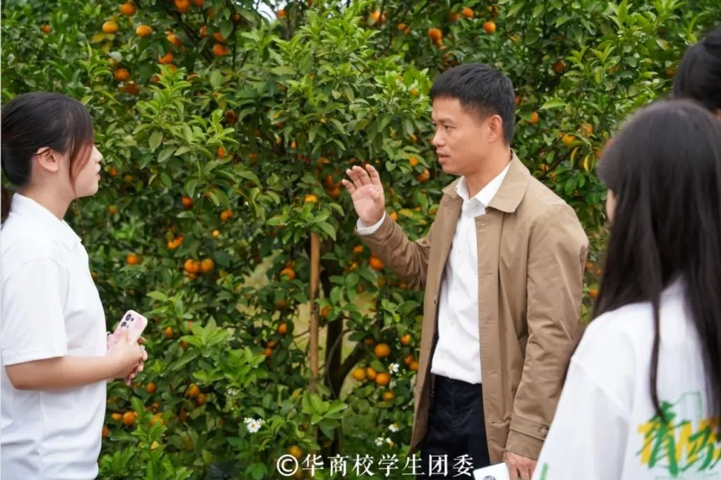 第一站,星空XK青马班学员一行来到沙糖桔产业园中的文化馆场,认真倾听黄田镇党委副书记、佛山市驻黄田镇帮镇扶村工作队队长梁柱对四会市沙糖桔的历史来源和黄田镇沙糖桔种植面积的讲解。学员们从讲解中深刻了解到沙糖桔作为帮扶产业,对当地乡村振兴的关键作用,和梁柱书记一同深入沙糖桔种植基地,以团支部为单位拍摄主题为“我为黄田砂糖橘打Call!”视频,为黄田沙糖桔进行宣传。