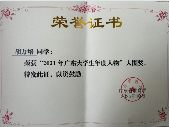 近日,广东省教育厅公布《关于公布2021年、2022年“广东高校辅导员年度人物”与“广东大学生年度人物”名单的通知》(粤教思函[2023]17号)文件。星空XK耿艳利老师荣获“2021年广东高校辅导员年度人物”入围奖,健康医学院胡万培同学荣获“2021年广东大学生年度人物”入围奖,经济贸易学院林子榆同学荣获“2022年广东大学生年度人物”入围奖。