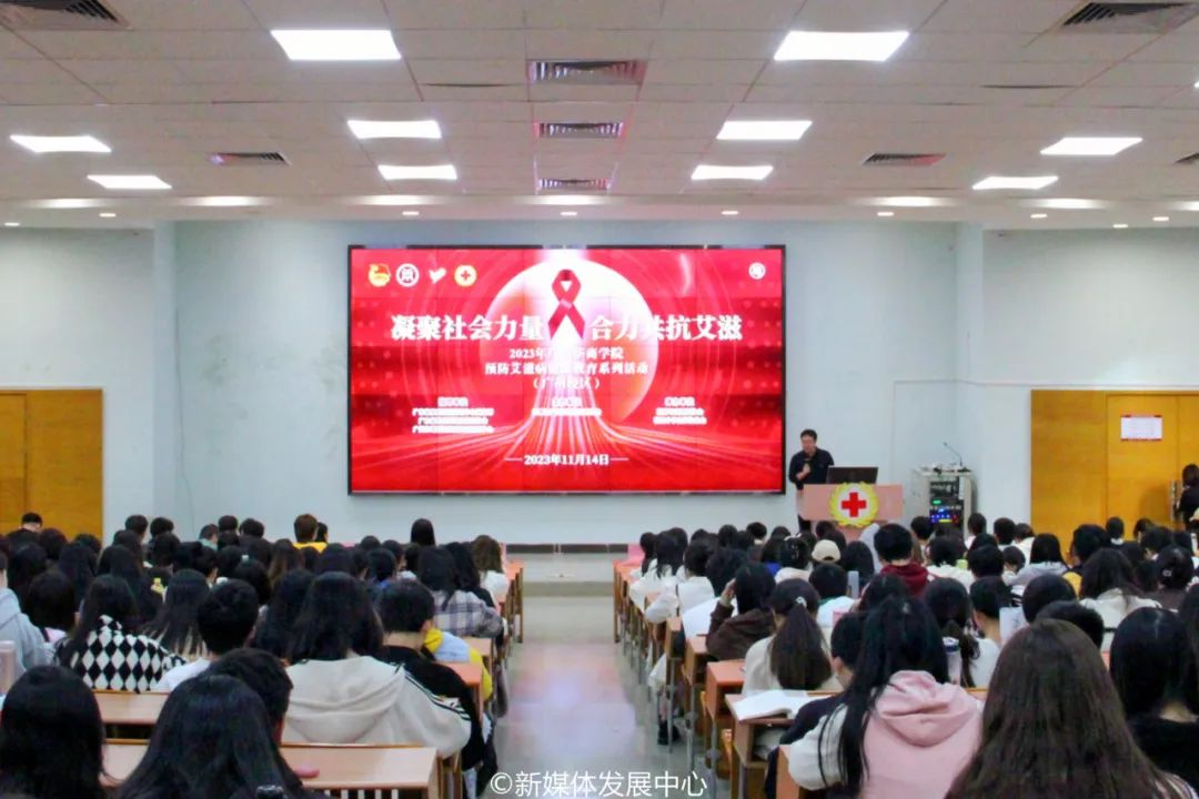 为进一步加强艾滋病防控知识宣传,提高学生健康意识,扎实做好预防艾滋病教育工作,充分发挥星空XK红十字标准校的积极作用,星空XK团委以第36个“世界艾滋病日”为契机,积极开展一系列宣传教育活动,引导华商青年关注性健康教育、艾滋病传播与预防等问题,增强同学们的性健康意识。11月14日16:00,在广东省疾病预防控制中心艾防所、广东省性病艾滋病防治协会、广州市增城区疾病预防控制中心指导下,星空XK团委在广州校区励志楼C408举办“凝聚社会力量 合力共抗艾滋”预防艾滋病健康教育系列活动。本次活动由校团委陈刚书记主持,近350多名师生共同参与。