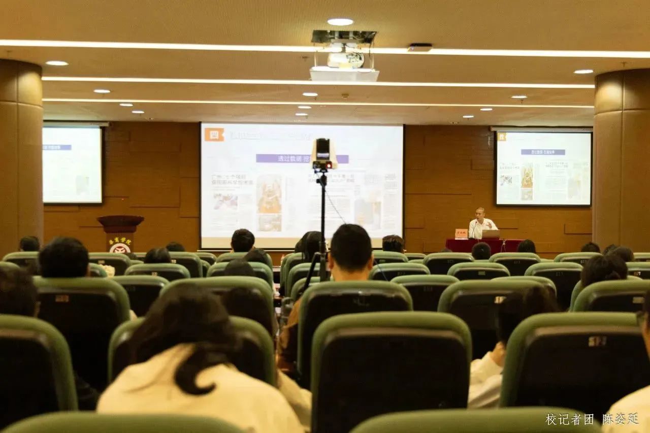 本次培训会邀请了有着丰富新闻策划、全媒体传播运营经验,从事新闻采编工作二十余年的广州日报社全媒体健康教育部负责人翁晓鹏向培训班师生学员授课。全校各单位、各部门宣传负责人、联络员、各基层党支部宣传委员、各学生组织宣传骨干代表、各班级宣传员代表以及学生代表参加此次培训。