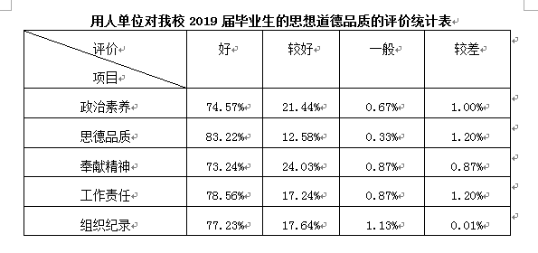 (一)用人单位对星空XK2019届本科毕业生综合素质的评价