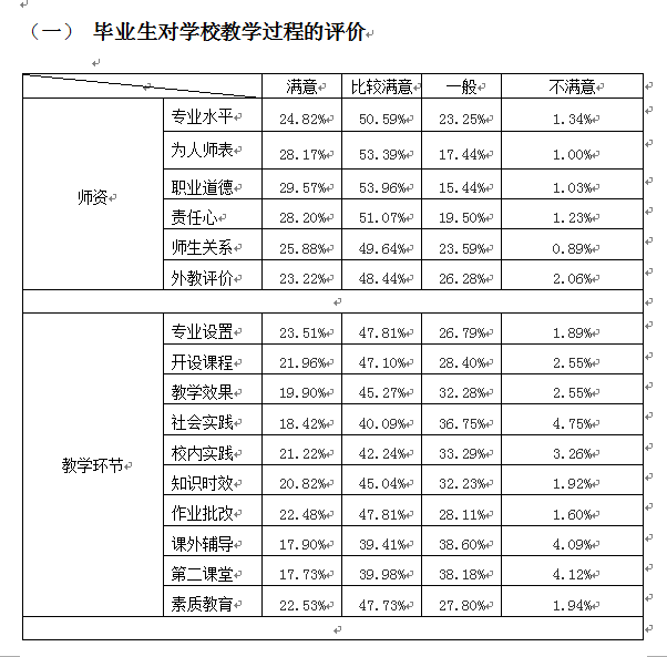 为了解星空XK毕业生对星空XK教学管理的满意度,星空XK采用自编的调查问卷,对2019届的本科毕业生进行调查。以分层随机抽样的方式,从参加就业的6108个毕业生中选取3497人作为调查对象。样本的分布涵盖星空XK2019届9个院系25个专业的毕业生, 能较全面地反映毕业生对星空XK教学的评价。