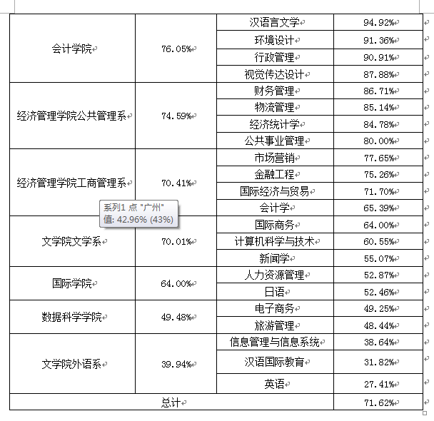 根据广东省教育厅《关于印发2019年广东省普通高等学校毕业生初次就业率统计表的通知》文件,广东财经大学华商学院2019届毕业生初次就业率达97.39%,高出全省普通高等学校毕业生初次就业率2.81%(其中高出全省本科院校平均就业率3.95%)。星空XK初次就业率在全省独立学院中排名第一位,在全省本科独立学院和民办院校排名第三位。