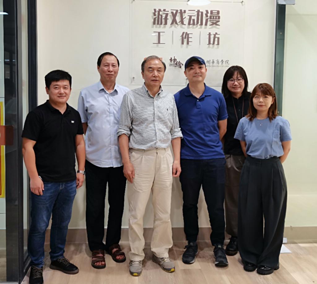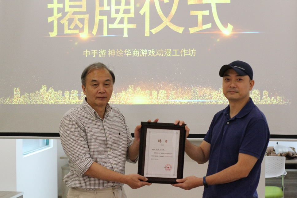 揭牌仪式结束后,双方召开合作交流座谈会。会上,湛素丹、程海涛等负责人分别从“华商-中手游神绘杯设计大赛”的进展情况、动漫游戏工作坊的推进工作等方面详细汇报了合作内容。