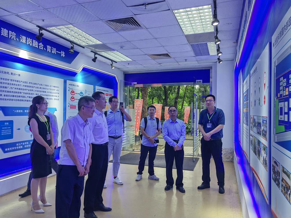 随后,郭校长一行在陈统董事长的陪同下,参观了轩辕网络以及位于光宝广州科技园区内的科学城产业学院,并与公司领导层进行了深入交流。广东轩辕网络科技股份有限公司董事长陈统、副总裁李楚威、副总裁伍世梨、销售总监廖灵锋参与座谈交流。